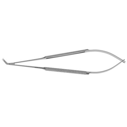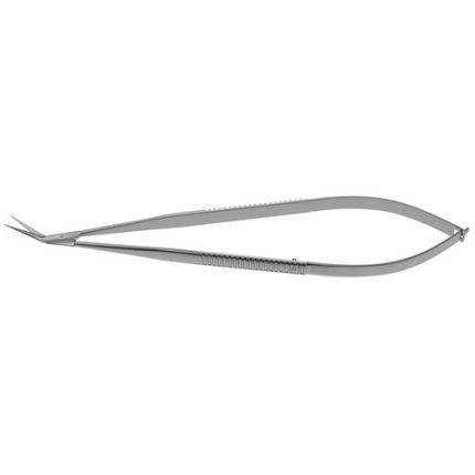 Micro Vannas Scissors are ideal for making small cuts and dissecting small tissue. They feature a flat handle for increased stability, and are bayonet-shaped for improved line of vision. It has a 45-degree micro fine blade that makes it useful in confined surgical areas. These scissors are made of operating room grade stainless steel, and are manufactured to the highest standard of instrumentation by expert craftsmen in Germany.