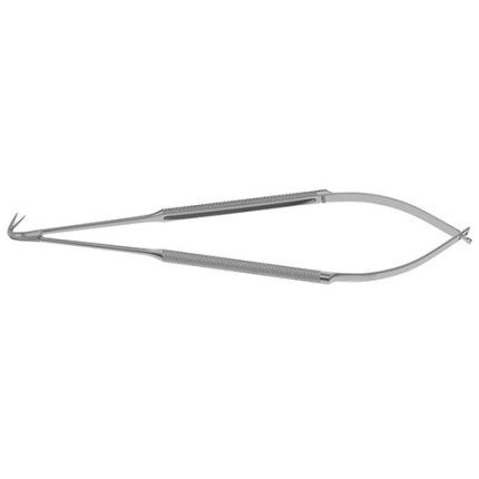 Micro Vascular Scissors are formed from titanium and are ideally made for certain cardiothoracic surgeries. This instrument is most suitable for surgical interventions that require arteriotomies on micro vascular structures. These scissors are well suited for that function because of their round handle as well as the extra delicate tips that make them able to make incisions into vessels of very small diameter without clipping or damaging equally delicate surrounding vasculature. This instrument is available in five four different angle measures: 25, 60, 90 and 120 degrees.
