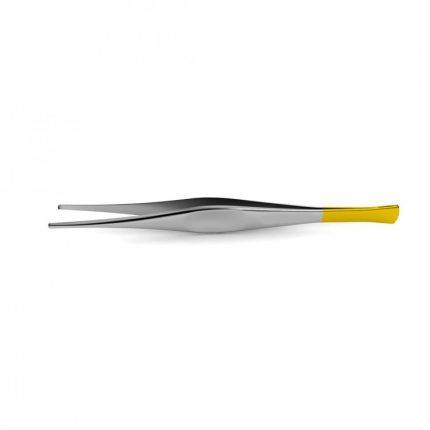 DeBakey Needle Pulling Tissue Forceps are handcrafted from tungsten carbide for a durable and strong instrument with a crosshatched surface to provide a secure grip. The round handle provides comfort while the 1.5 mm tips makes this instrument ideal for secure needle pulling action. Tngsten carbide forceps feature tips made from tungsten carbide, the hardest metal made for surgical instruments. Precision-milled serrations are formed onto the tungsten carbide inserts, resulting in pyramid-shaped teeth that provide a non-slip grip. Pyramid-shaped teeth align perfectly with each other to provide a durable and reliable grasp of the most delicate or toughest tissues, as well as needles, sutures, dressing materials and delicate vessels. Smooth tungsten carbide inserts are also available for delicate procedures. Spring tension allows for surgeons to maintain proper and consistent position, ensuring optimal grip without having to apply excess force. These forceps feature gold-plated handles.
