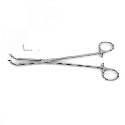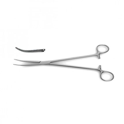 Young Renal Pedicle Clamp is ideal for open kidney operations and can be used to clamp thick tissue. The curved, long jaws of this 9" instrument may also function, for example, to obstruct the renal artery. Longitudinal serrations with cross serrations at the tip also serve the purpose of providing a better grip at the tissue or artery being held.