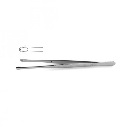 Pennington Tissue Grasping Forceps have triangular shaped jaw ends that are serrated and 12.0mm in width. As a result, tissues can be properly and securely held while still maintaining a firm grip. Although this instrument is commonly employed during surgical procedures like urinary and rectal, it may also pertain to the dressing of wounds.