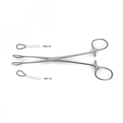 Fletcher Sponge Forceps with serrated tear-drop jaws that are presented in either a straight or curved style. Although these forceps are made for general surgical procedures, the most common field to utilize this instrument is gynecology. For instance, the curved style tends to be used more often in female sterilization procedures. However, they may also appear in other procedures to hold viscera bowel and bladder.