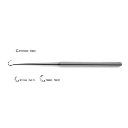 Kutz Hook 6" (15.2 cm) Kleinert-Kutz Hook is a 6" long instrument with a handle that provides a better grip for the surgeon. The hook at the end is curved with a sharp pointed tip in order to grasp delicate tissue. The hook is available in small, medium, or large size to account for different scenarios.