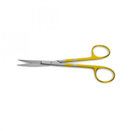 Goldman-Fox Scissors with the fine tips are handcrafted with tungsten carbide inlays to increase product durability and lifetime, while offering a sharp cutting edge. Designed for contouring and cutting gingival tissue, the micro serrated blades allow for cutting without slipping. Medicrest Surgical Industries Goldman-Fox Scissors are used to trim tissue, barriers, and granulation tissue on the underside of flaps or cut suture thread during surgery. The Medicrest Surgical Industries Golman-Fox Scissors are available with cured or straight tips. scissors combine the performance and precision of supercut with the durability of tungsten carbide cutting edges. These scissors: 1) feature tungsten carbide inlays on both blades for increased durability, sharper cutting edges and enhanced service life; 2) have one standard blade and one with micro-serrations; 3) feature inlays that are soldered onto the blades in a vacuum oven, not welded, resulting in a harder and more durable inlay than those welded on in a traditional process; and 4) feature gold-plated handles with stripes.