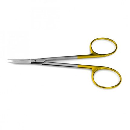 Iris Scissors with blades are handcrafted with tungsten carbide inlays that increase durability, provide the sharpest cutting edge, and extend the lifetime of the product. The Iris Scissors were first designed for the intricacies demanded by ophthalmic surgery. Today these fine, sharp scissors can be used in other contexts where precision is required. The Medicrest Surgical Industries Iris Scissor is available with a straight or curved tips and with the micro serrated blade that allows for clean cuts through delicate tissue. Scissors combine the performance and precision of supercut with the durability of tungsten carbide cutting edges. These scissors: 1) feature tungsten carbide inlays on both blades for increased durability, sharper cutting edges and enhanced service life; 2) have one standard blade and one with micro-serrations; 3) feature inlays that are soldered onto the blades in a vacuum oven, not welded, resulting in a harder and more durable inlay than those welded on in a traditional process; and 4) feature gold-plated handles with stripes.