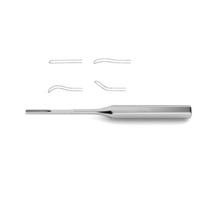 octagonal handle, 8" (20.0 cm)?Cherry Osteotome is designed for use in cutting and preparation of bone in neurosurgical procedures. This osteotome has a long, slender profile as well as a uniquely designed octagonal handle which allows it to be gripped and maneuvered easily. Additionally this osteotome is available in five widths 3.0, 4.0, 5.0, 6.0 and 7.0 mm and in either a straight or curved profile making it suitable for a wide variety of patient needs and surgical approaches.