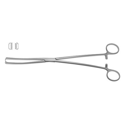 5x6 teeth, s-shaped, 10-1/4" (26.0 cm) Jacobs Vulsellum Forceps feature serrated 2X2 teeth to grasp the uterus during surgical procedures. The ring handles allow for a comfortable and secure grip. The forceps are available straight or curved to the side.