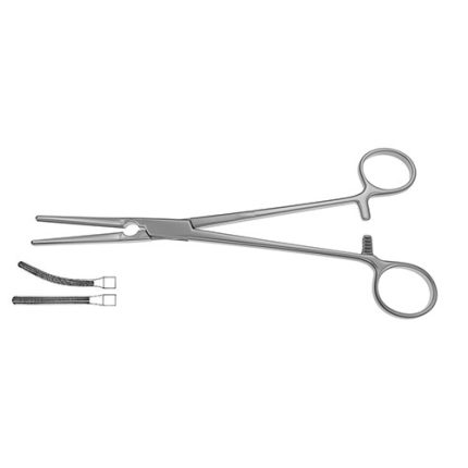 2x3 atraumatic teeth, 1-5/8" (41.0 mm) jaw length, 8-1/2" (21.6 cm) ?Masterson-Type Hysterectomy Forceps feature atraumatic teeth to securely grasp the tough ligament on both sides of the uterus in hysterectomy procedures with minimal tissue trauma. The ring handles feature a lock mechanism to hold the blades in position. The forceps are available with straight or curved blades to accommodate different cases.
