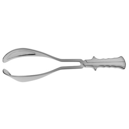 14-1/4" (36.0 cm)?McLane-Tucker Obstetrical Forceps are designed to aid in the delivery process by firmly grasping the fetal head and providing traction. The blades feature a more rounded cephalic curve for the unmolded fetal head, commonly seen in multiparous women. The grooved handle provides a comfortable and secure grip for the obstetrician.