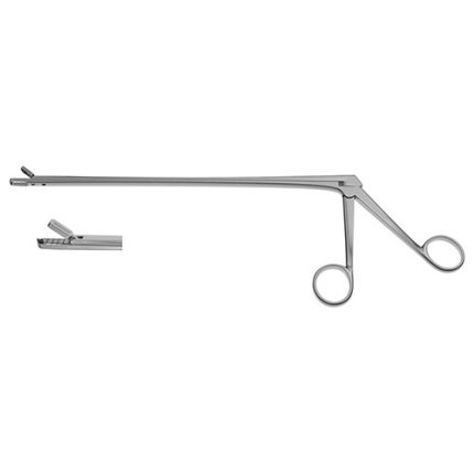 Schubert Biopsy Forceps are designed with triangular bites to take biopsy samples from uterine tissue. The shank design allows the surgeon to apply significant pressure during sampling. The forceps are available at various angles and shapes for access to hard-to-reach sites.
