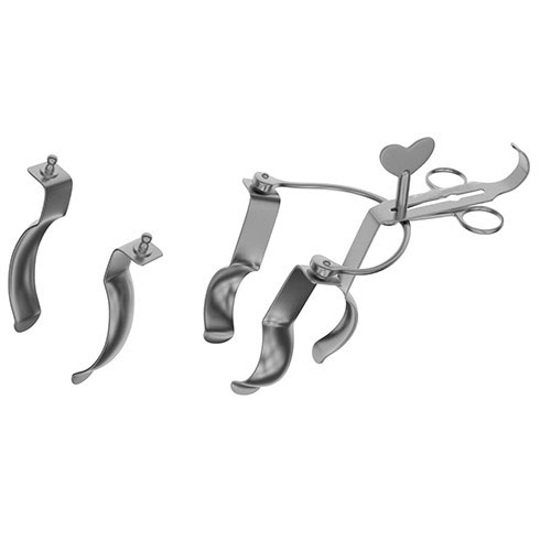 Alan-Parks Rectal Retractor features a set of blades that can be put together on a frame to form the complete retractor. The retractor can then be inserted into the anus and dilated to assist in surgical procedures of the region. The blades and frame can be bought separately or together as the complete set.