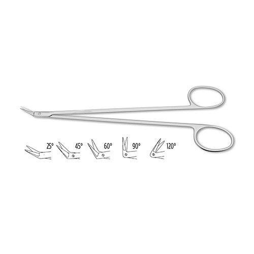 Micro Scissors - Round Handle - Angled Tips undefined Jacobson Micro Scissors are commonly used for cutting or making incisions in cardiothoracic procedures where the surgical space is confined. They feature a round handle for easy manipulation, and micro fine blades that are small enough not to damage the neighboring tissue, and large enough to cut larger vessels. Many different angle blades are offered to match a variety of surgeons' and procedures' needs. These scissors are made of operating room grade stainless steel, and are manufactured to the highest standard of instrumentation by expert craftsmen in Germany.
