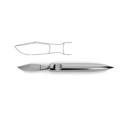 metal handle, 3.8 cm wide, 7" (18.0 cm)Reiner Cast Knife is crafted for use in a variety of scenarios, usually post-operative. In order to keep the bone in the orientation that is required during the healing process often repaired fractures of the arm and leg are often placed in a cast. The cast can be made from a plaster material that requires a serrated edge specifically designed to cut through it as can be found in this cast knife. Additionally this instrument is 7" long and features a metal handle.