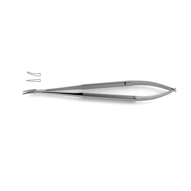 Castroviejo Needle Holder standard pattern, smooth jaws, 5-1/2" (14.0 cm) Castroviejo Needle is handcrafted from surgical grade German stainless steel and designed with a reliable, smooth grip jaw. Designed with either a straight or curved jaw with optional lock, this instrument is often used for microsurgical procedures. The flat handles offer non-slip control.