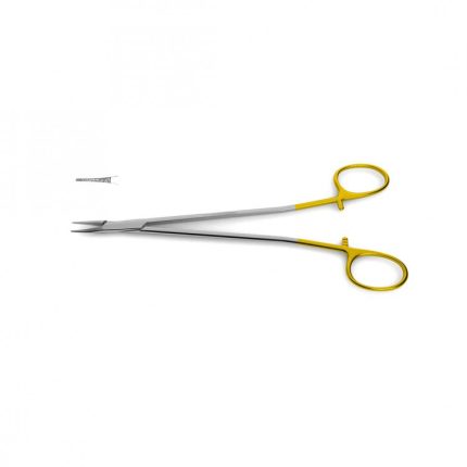 Tungsten Carbide, Use W/ 5-0 & 6-0 Sutures Cooley Needle Holder is handcrafted from German stainless steel and tungsten carbide inserts to provide a durable instrument that promises precision and control. Designed with a very delicate pattern, straight jaws, with smooth, indented shanks, this instrument is often used throughout cardiac procedures. Available in several lengths.Tungsten carbide needle holders provide unparalleled control while suturing. The precision-milled, pyramid-shaped teeth ensure a dependable, non-slip surface. Some needle holder styles are also available with smooth tungsten carbide jaws, designed to hold the smallest sutures in microsurgical and plastic surgery procedures. Tungsten carbide jaws are inherently more durable than stainless steel and clinicians will experience an extended service-life. These needle holders feature gold-plated handles.