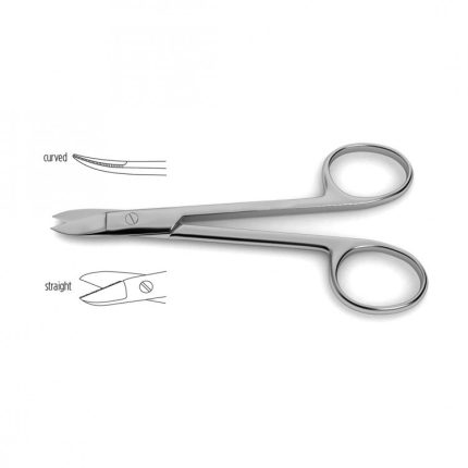Beebee (Crown & Collar) Wire Cutting Scissors Beebee (Crown and Collar) Wire Cutting Scissors are handcrafted with surgical grade German stainless steel. Available with straight or curved shanks as well as with smooth or serrated blades, the short shank scissor is ideal for cutting wires with minimal slipping. This instrument is protected by Medicrest Surgical Industries manufacturer warranty on defects in materials and workmanship.
