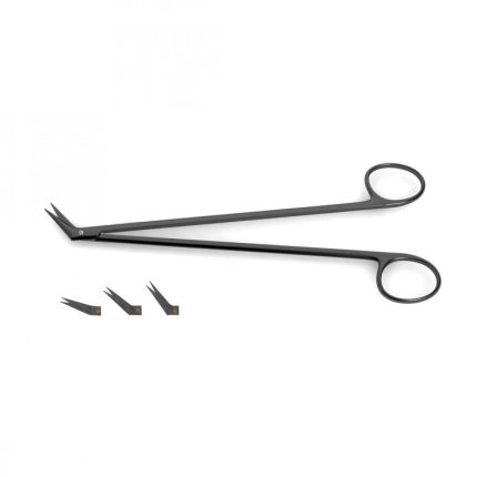 (tungsten carbide blades w/ 1 micro serrated blade), angled, 7-1/2" (19.1 cm) Ceramic Cut Potts-Smith Scissors are used for cutting and dissecting during vascular procedures. Ideal for extending venotomy or arteriotomy incisions, they are constructed with tungsten carbide blades and a variety of angles (25, 45, and 60 degrees). These variations allow for finding the perfect tool for the procedure. The black ceramic coated reduces glare and friction while ensuring a smooth cutting action. Ceramic cut scissors are the highest-performing line of scissors Medicrest Surgical Industries offers. These scissors, combine the performance and precision of supercut with the durability of tungsten carbide cutting edges. In addition, the entire instrument is coated with a black ceramic finish which provides the highest surface hardness of all scissor models and results in a supremely durable instrument. The black ceramic coating is designed to reduce the friction between metal surfaces and provide surgeons with a smooth, steady cutting action. The black finish also reduces glare under operating room lights.