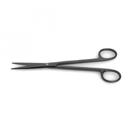 tungsten carbide blades w/ 1 micro serrated blade) Ceramic Cut Mayo-Stille Scissors while possessing the features of standard scissors, they also have the advantage of being sharper. Coated with a black ceramic finish to reduce the friction between metal surfaces and allow for precision cutting in a variety of tissue types. Available in both straight and curved to suit the needs of the surgeon. Straight scissors are ideal for surface level use while the curved pattern is better for use deep within tissue or muscle. Ceramic cut scissors are the highest-performing line of scissors Medicrest Surgical Industries offers. These scissors, combine the performance and precision of supercut with the durability of tungsten carbide cutting edges. In addition, the entire instrument is coated with a black ceramic finish which provides the highest surface hardness of all scissor models and results in a supremely durable instrument. The black ceramic coating is designed to reduce the friction between metal surfaces and provide surgeons with a smooth, steady cutting action. The black finish also reduces glare under operating room lights.