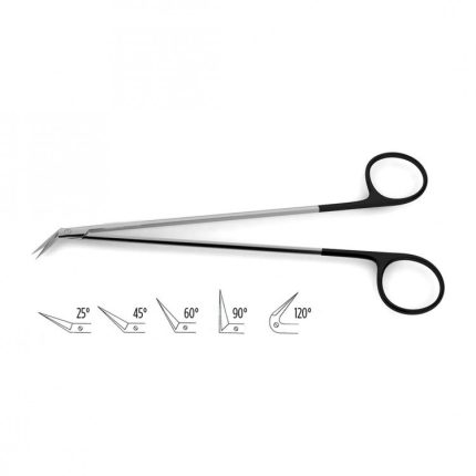Diethrich Coronary Artery Scissors - Supercut supercut, 7" (17.5 cm) Diethrich Coronary Artery Scissors are handcrafted from surgical grade German stainless steel. The long Supercut blades are available in a range of angles (25, 45, 60, 90, 120 degrees) to accommodate cardiovascular procedures such as arteriotomies. The black-coated ring handles help the surgeon to maintain a comfortable grip. Supercut scissors are designed to provide the surgeon with maximum control. These scissors feature specially-designed razor sharp upper blade edges to cut effortlessly and cleanly through dense or delicate tissue, have diamond-cut micro-serrations on the lower blade to grip tissue and prevent slippage, and feature black-coated handles.