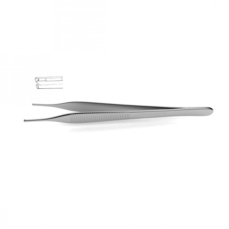 Adson-Micro Thumb Forceps Adson-Micro Thumb Forceps are handcrafted from surgical grade German stainless steel. Available in a variety of forms: for dressings with a serrated platform or for tissue with a serrated platform and 1x2 teeth. Each style is also available several different lengths for a comfortable grip. This instrument is ideal for delicate tissues. Please note that website images are often representative of the product family and may not conform to the exact specifications or features of the item you select. The final specifications will match the description of the specific catalog item you select.
