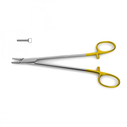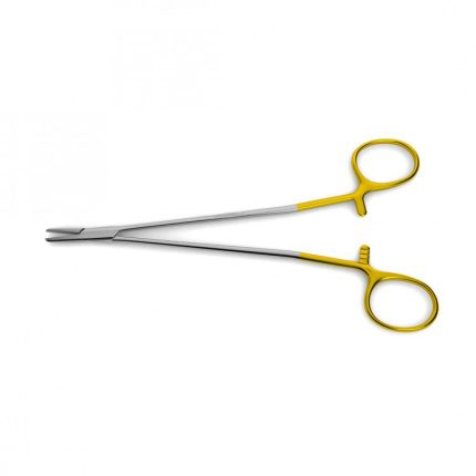 Tungsten Carbide, Very Delicate, Straight Jaws, Indented Shanks Cooley Needle Holder is handcrafted from German stainless steel and tungsten carbide inserts to provide a durable instrument that promises precision and control. Designed with a very delicate pattern, straight jaws, with smooth, indented shanks, this instrument is often used throughout cardiac procedures. Available in several lengths. Tungsten carbide needle holders provide unparalleled control while suturing. The precision-milled, pyramid-shaped teeth ensure a dependable, non-slip surface. Some needle holder styles are also available with smooth tungsten carbide jaws, designed to hold the smallest sutures in microsurgical and plastic surgery procedures. Tungsten carbide jaws are inherently more durable than stainless steel and clinicians will experience an extended service-life. These needle holders feature gold-plated handles.