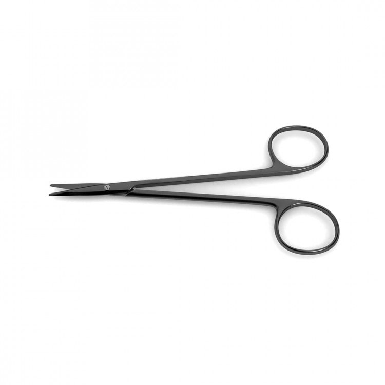(tungsten carbide blades w/ 1 micro serrated blade), 4-1/2" (11.4 cm) Ceramic Cut Iris Scissors were first designed for the intricacies demanded by ophthalmic surgery but today these fine, sharp scissors can be used in other contexts where precision is required. The Novo Surgical's Ceramic Cut Iris scissor is available in two lengths and with a straight or curved tip. The black ceramic coating reduces glare while providing durability. Ceramic cut scissors are the highest-performing line of scissors Novo Surgical's offers. These scissors, like NovoCut?, combine the performance and precision of supercut with the durability of tungsten carbide cutting edges. In addition, the entire instrument is coated with a black ceramic finish which provides the highest surface hardness of all scissor models and results in a supremely durable instrument. The black ceramic coating is designed to reduce the friction between metal surfaces and provide surgeons with a smooth, steady cutting action. The black finish also reduces glare under operating room lights.