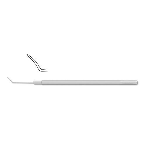 semi-sharp tip, 0.5 mm, 4-1/2″ (11.4 cm)?Elschnig Cyclodialysis Spatula is a commonly used tool in the treatment of glaucoma. The spatula is used in the procedure to dissociate the ciliary body from the sclera. Further, the tool may be used to enlarge an incision from a sclerectomy if desired. The spatula features a slender 10mm blade for ease of use.