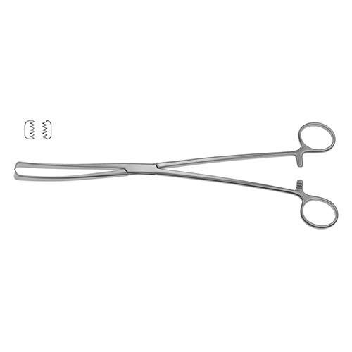 slightly curved, concave tip, 20.0 mm jaw, coarse teeth, 13" (33.0 cm) Blumenthal Ovum Forceps are ideal in the removal of placental tissue or other products of conception from the uterus to prevent infections. The hollow blades are slightly curved with coarse teeth on the jaws to firmly grasp the tissue to be removed. The concave tip is designed to prevent grasping the fundus of the uterus.