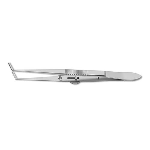 0.12 mm angled 45 degrees, 6.0 mm tying platform, 4-1/8" (10.5 cm)?Colibri Type Corneal Utility Forceps are a commonly used instrument for handling the corneal tissue during keratoplasty or repair. These forceps feature fine 0.12 teeth for the manipulating delicate tissue during cornea-scleral suturing, while the 6.0 mm tying platform allows for the handling of both tissue and sterile material. Finally, a ribbed handle provides a secure grip during the procedure.