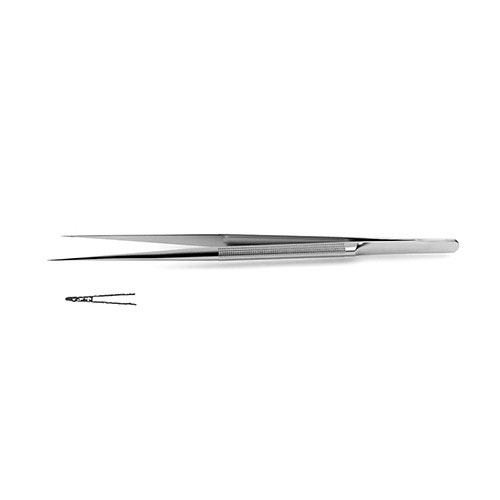 Bayonet-Style Micro Forceps - Flat Handle flat handle, bayonet-style, tips impregnated w/ fine tungsten carbide dust, straight tips, 9" (23.0 cm)