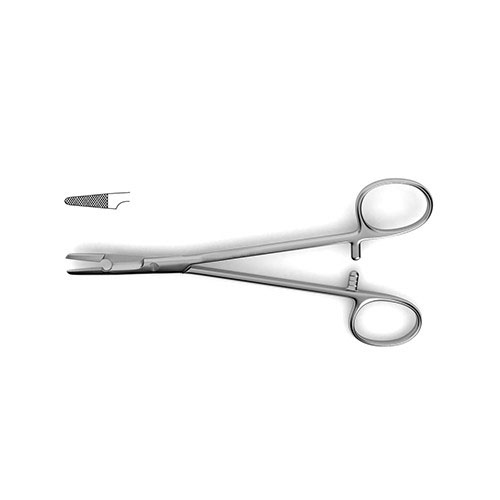 Collier Needle Holder fenestrated jaws, 5-1/8" (13.0 cm) Collier Needle Holder is handcrafted from surgical grade German stainless steel. Designed with fenestrated jaws and a ratcheted handle lock, this instrument holds the needle while suturing, while the fenestration allows for better management of the suture. This instrument is protected by Instruments 4 Dotors manufacturer warranty on defects in materials and workmanship.