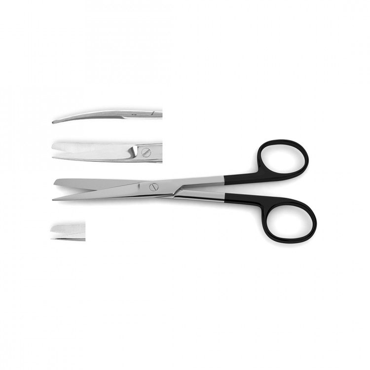 (tungsten carbide blades w/ 1 micro serrated blade), curved Ceramic Cut Gorney Scissors are often used for dissecting in plastic surgery procedures. The tungsten carbide blades are semi-sharp on the outer edges and micro serrated on the inner edges. The black ceramic coating ensures a smooth cutting action with reduced friction. The instrument is available in several lengths. Ceramic cut scissors are the highest-performing line of scissors Medicrest Surgical Industries offers. These scissors, combine the performance and precision of supercut with the durability of tungsten carbide cutting edges. In addition, the entire instrument is coated with a black ceramic finish which provides the highest surface hardness of all scissor models and results in a supremely durable instrument. The black ceramic coating is designed to reduce the friction between metal surfaces and provide surgeons with a smooth, steady cutting action. The black finish also reduces glare under operating room lights.