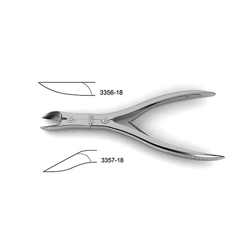 double-action, delicate blades, 6" (15.0 cm)Kleinert-Kutz Bone Cutting Forceps are a strongly built instrument made for use in cutting bone in a variety of different orthopedic procedures. These forceps are double action and feature a spring handle which gives them additional versatility. The blades of these forceps are delicate and can be used in areas such as in the orbit and the nose such as in nasal fractures of distorted growth. Additionally this instrument is available in either a straight or down-curved profile making it suitable for a number of patient needs or surgeon preferences.