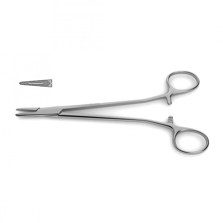 Tungsten Carbide, Use W/ 5-0 & 6-0 Sutures Cooley Needle Holder is handcrafted from German stainless steel and tungsten carbide inserts to provide a durable instrument that promises precision and control. Designed with a very delicate pattern, straight jaws, with smooth, indented shanks, this instrument is often used throughout cardiac procedures. Available in several lengths.Tungsten carbide needle holders provide unparalleled control while suturing. The precision-milled, pyramid-shaped teeth ensure a dependable, non-slip surface. Some needle holder styles are also available with smooth tungsten carbide jaws, designed to hold the smallest sutures in microsurgical and plastic surgery procedures. Tungsten carbide jaws are inherently more durable than stainless steel and clinicians will experience an extended service-life. These needle holders feature gold-plated handles.